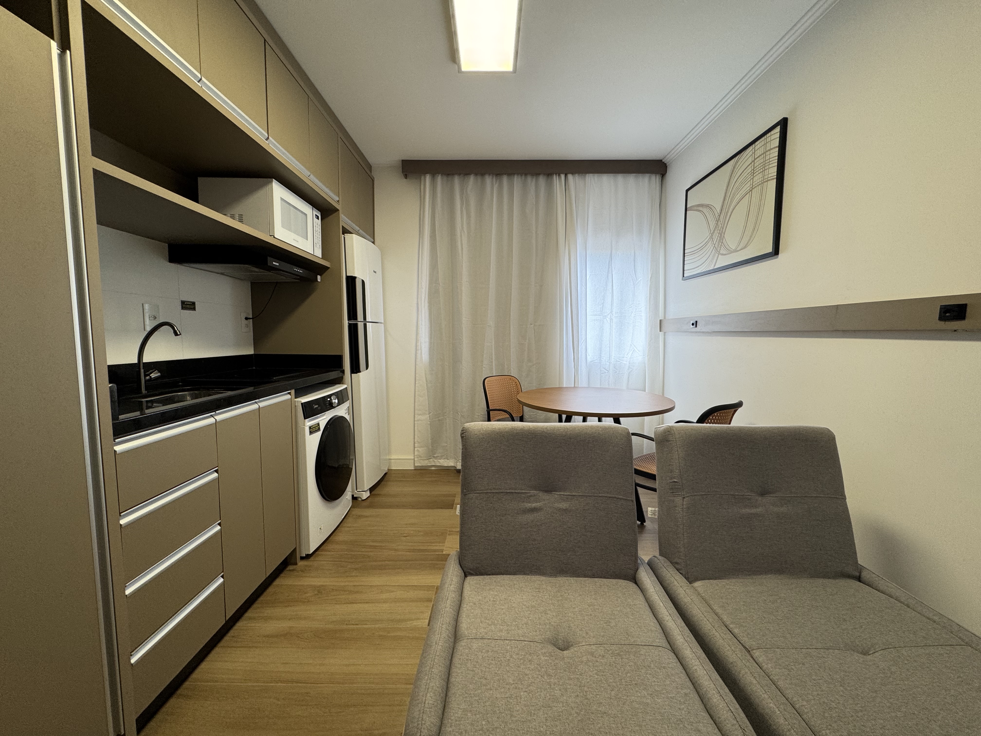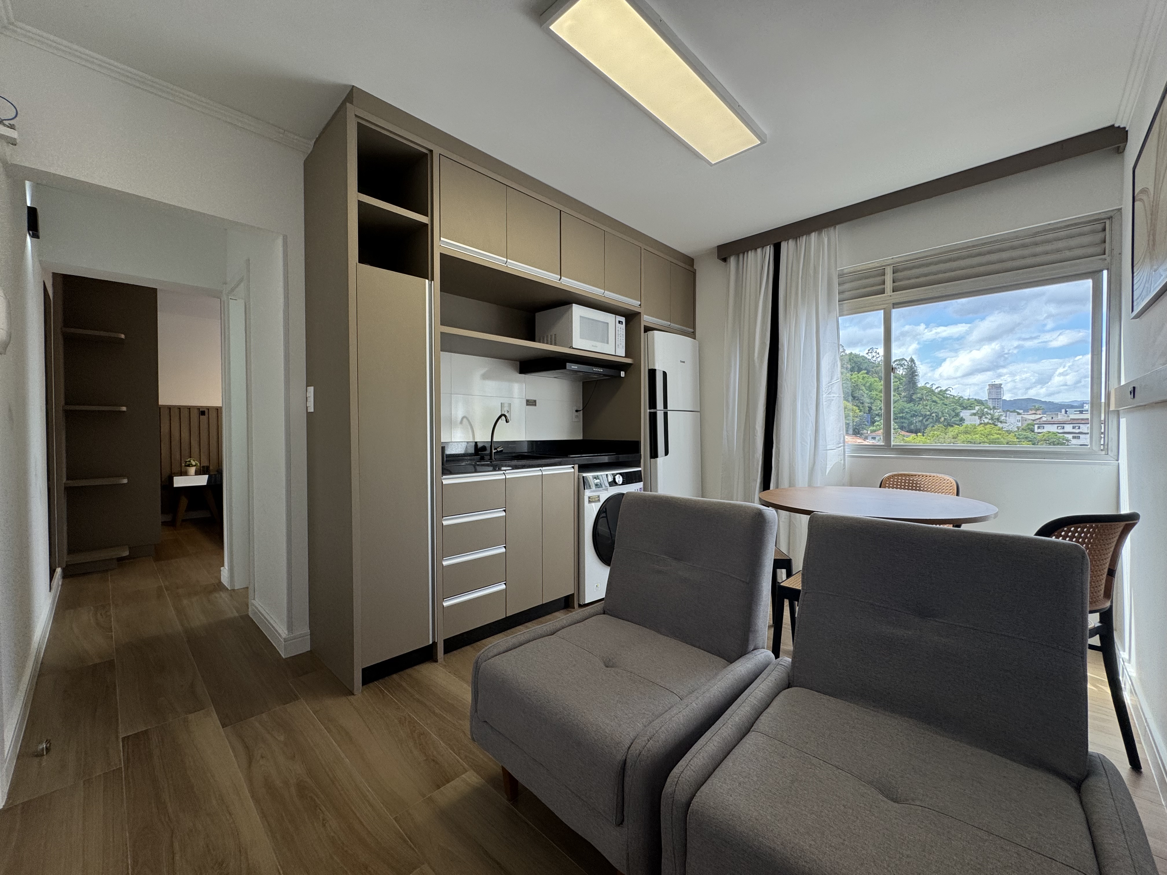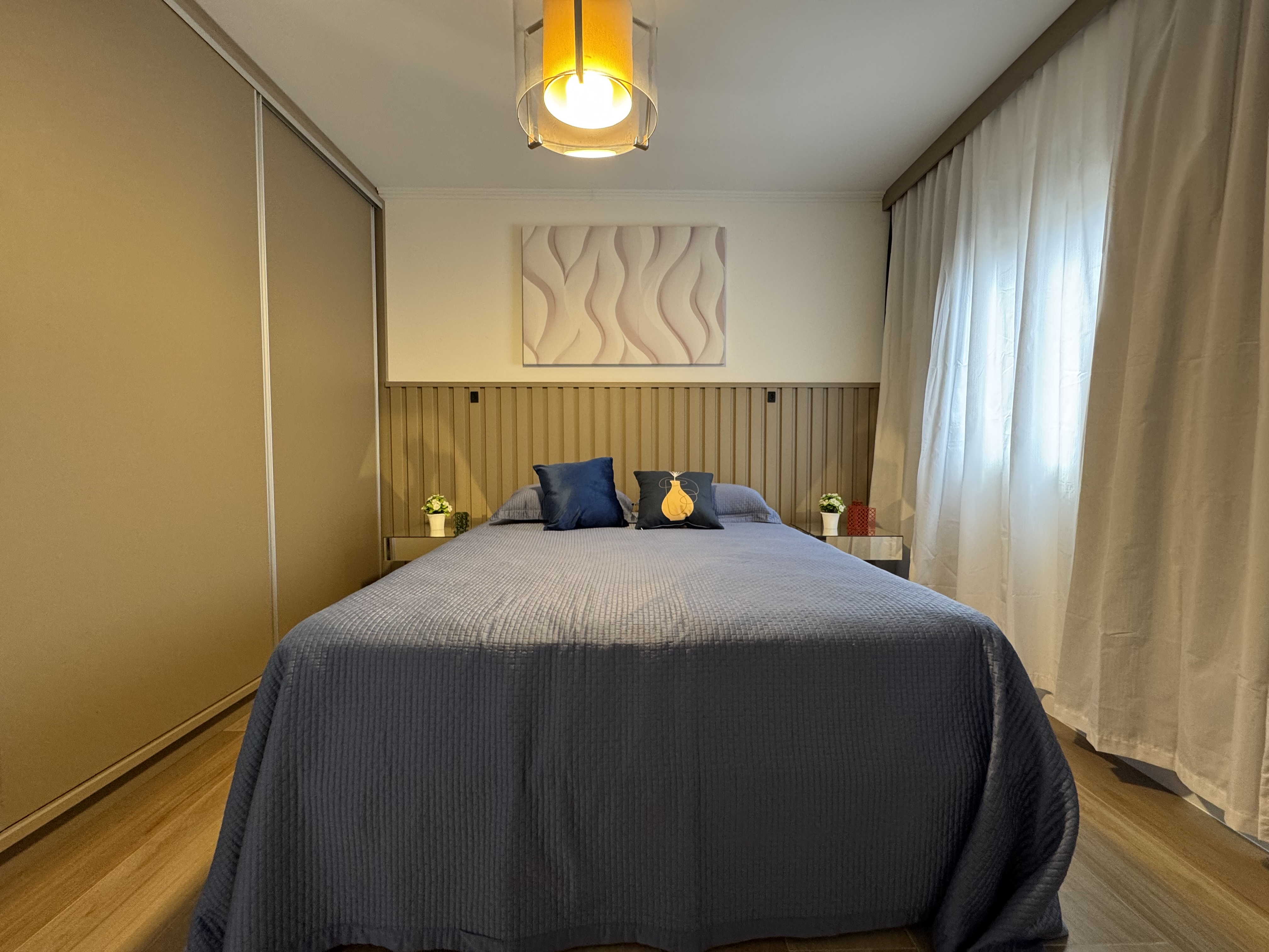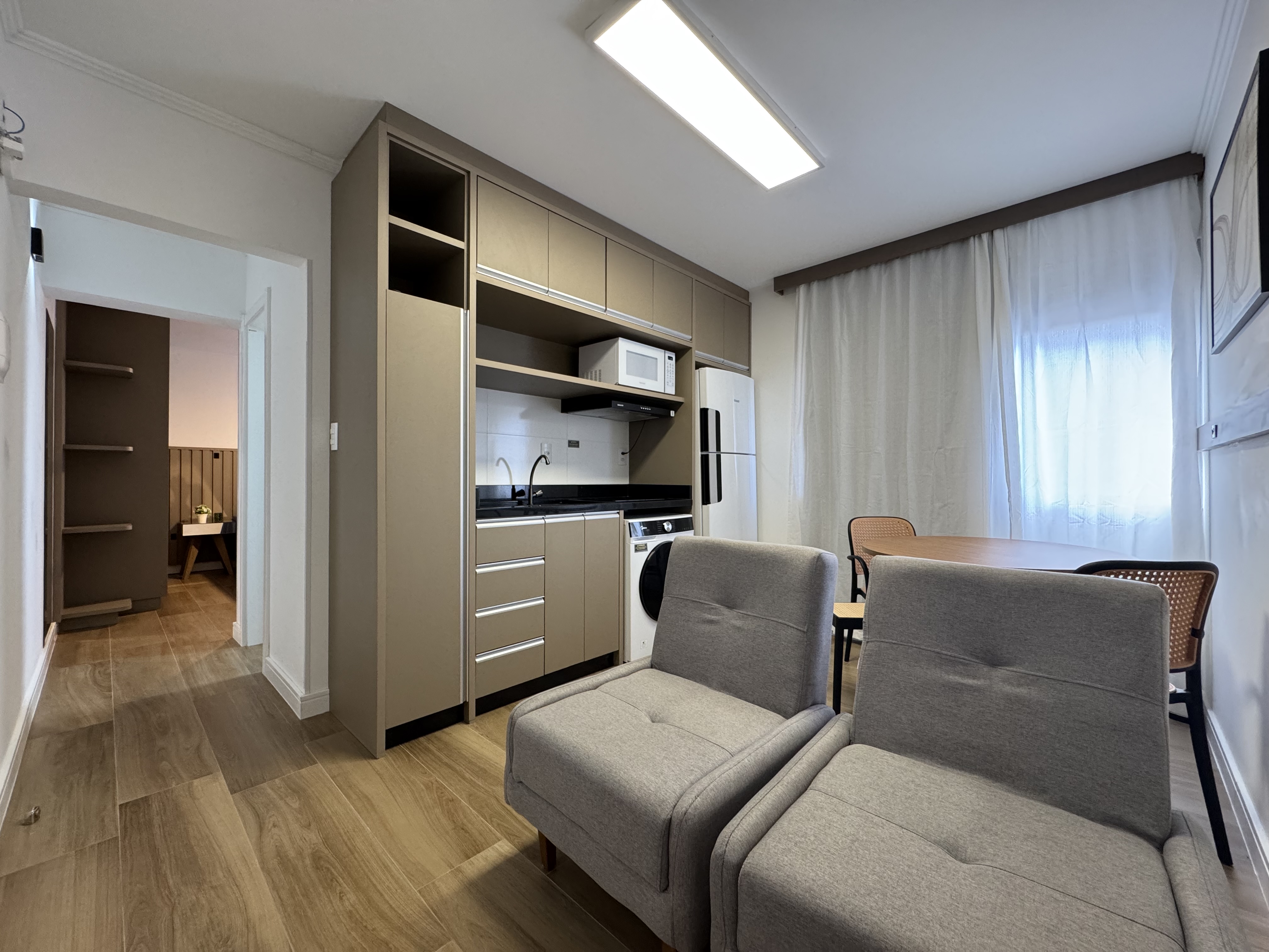 • Ambiente aconchegante com piso laminado e pintura nova