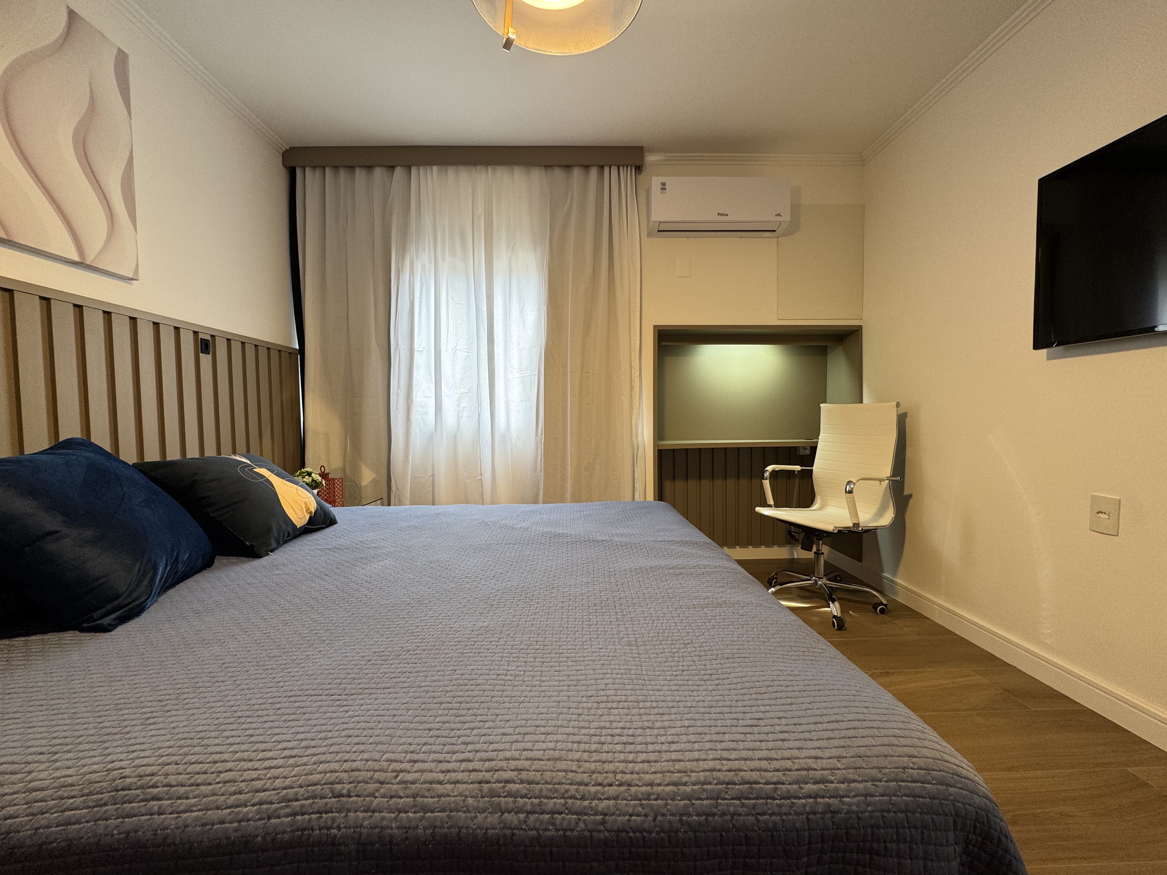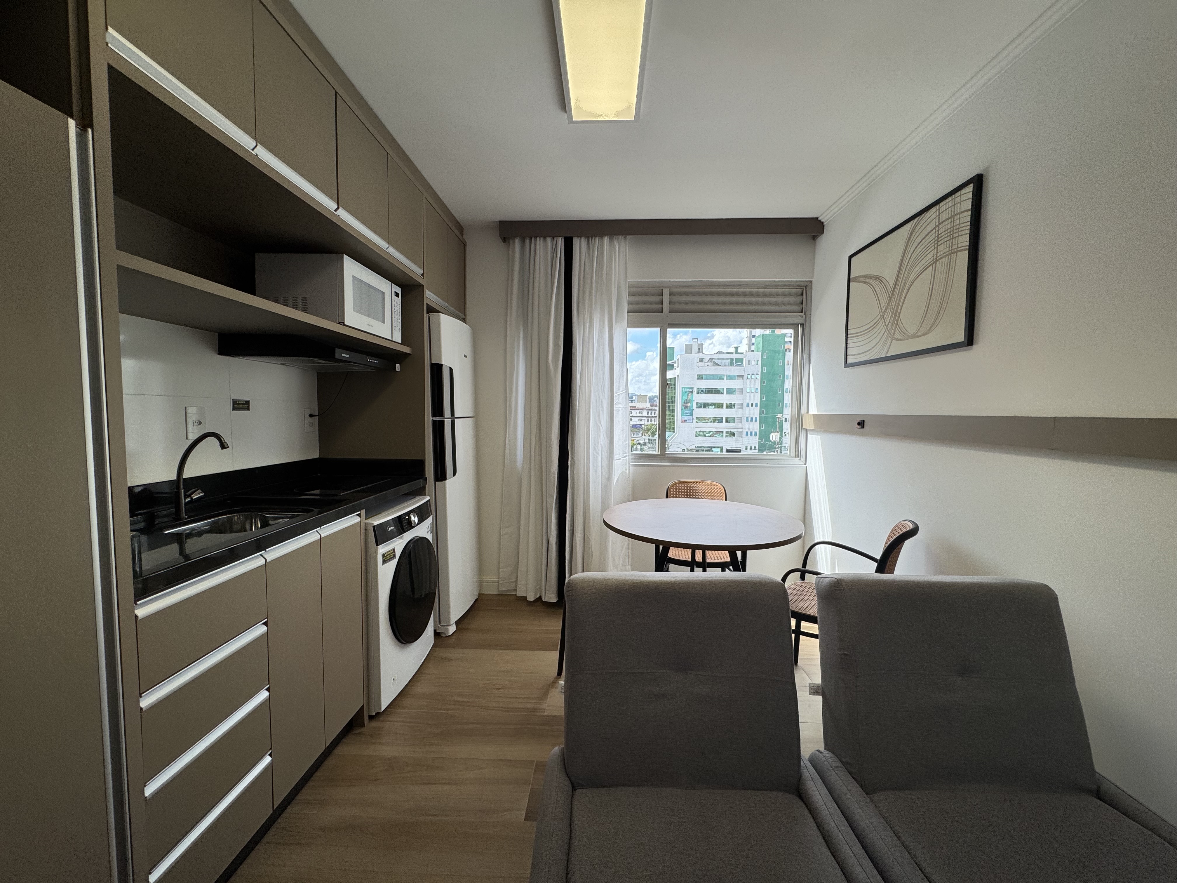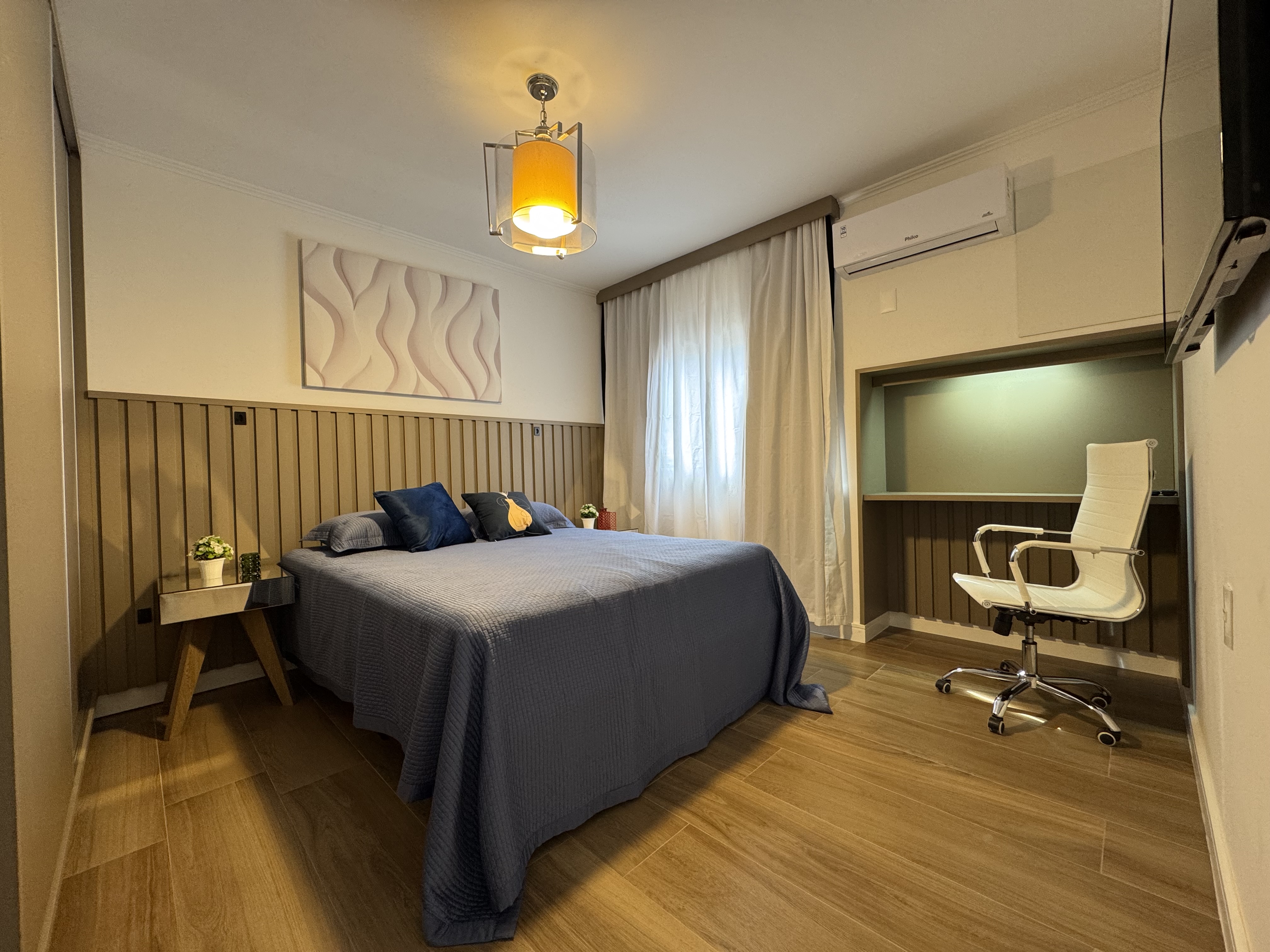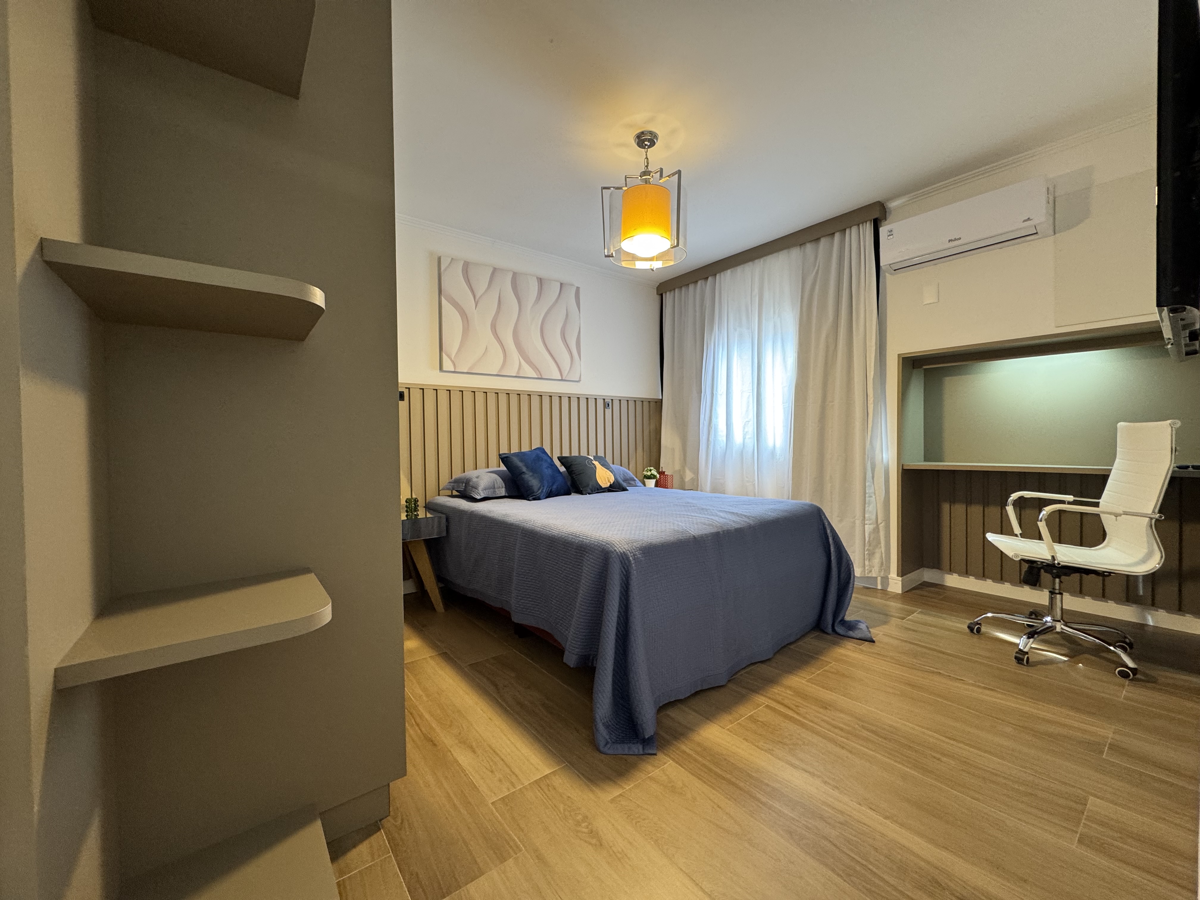 • Ambiente aconchegante com piso laminado e pintura nova