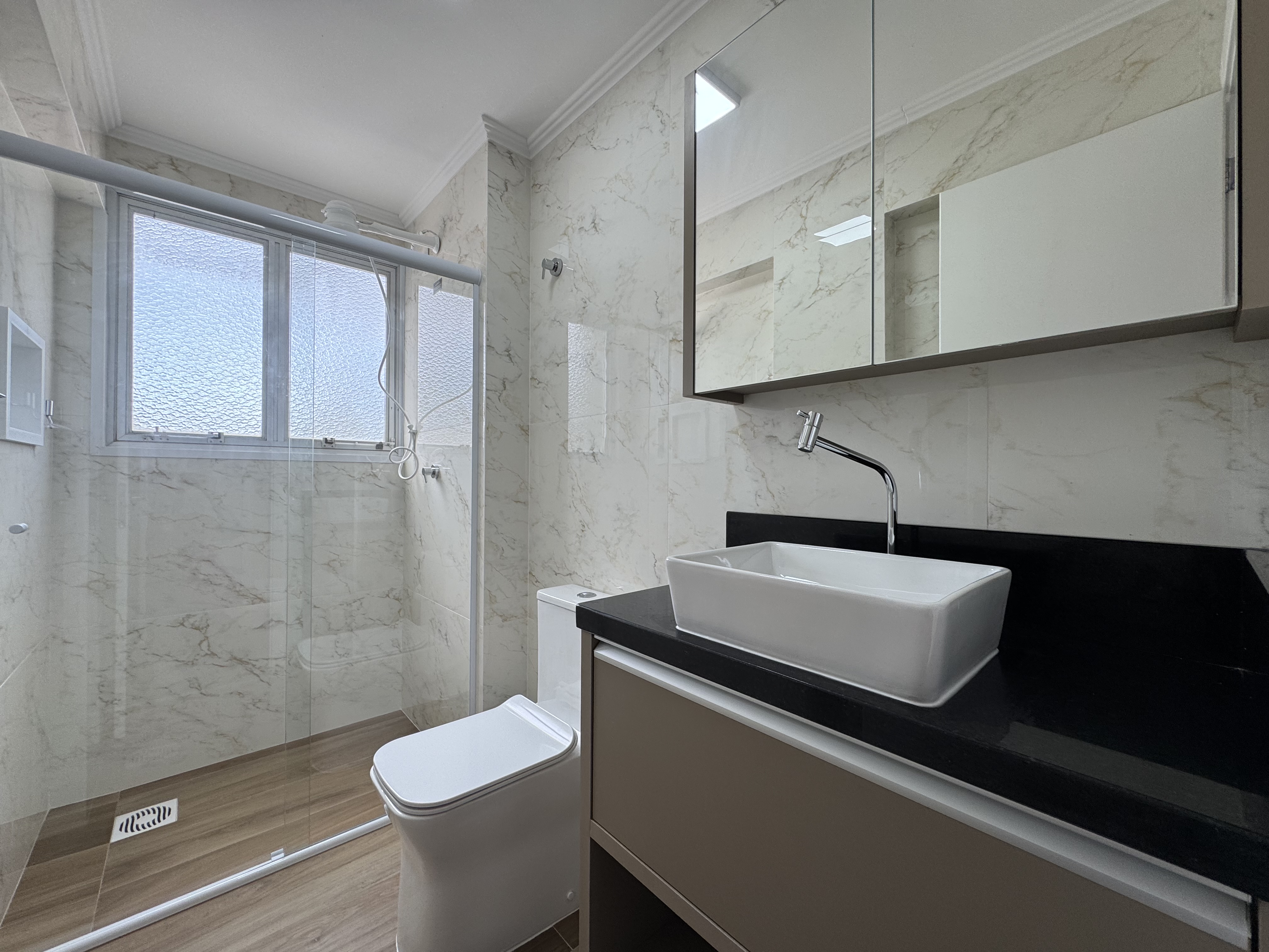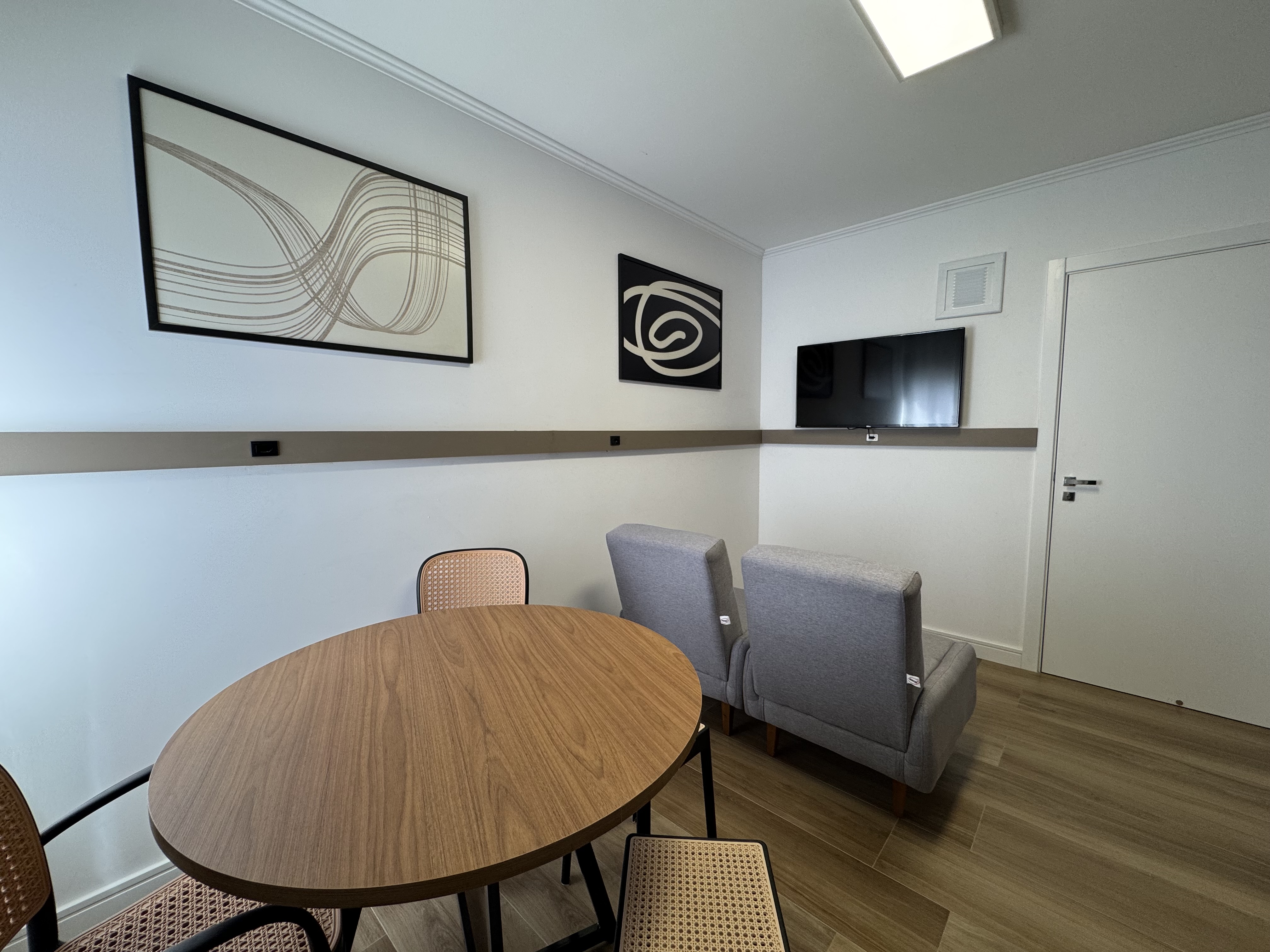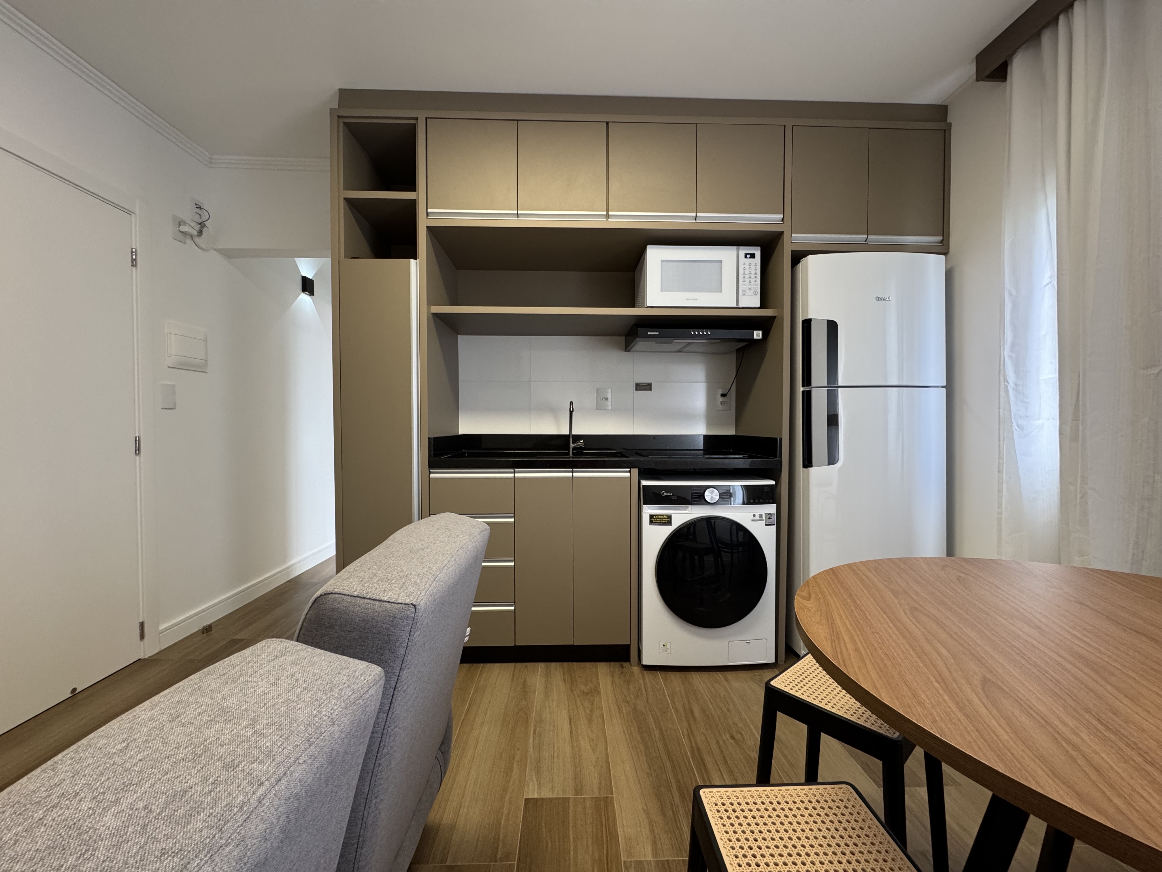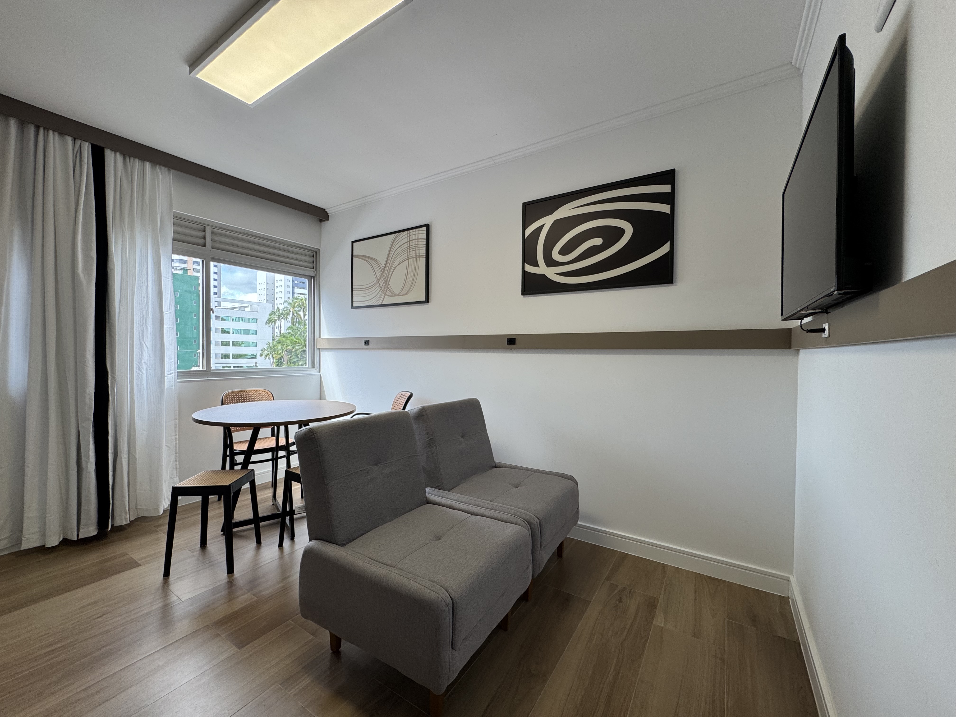 • Ambiente aconchegante com piso laminado e pintura nova